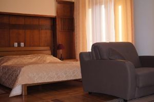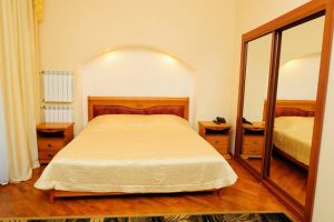 Санаторий представляет собой архитектурный комплекс из отдельно стоящих зданий, которые являются памятниками дворцовой архитектуры, расположен на озелененной территории общей площадью 34 га с терренкурами, цветниками, фонтаном, спортивными площадками. В санатории имеется три спальных корпуса (4 и 5 этажей), корпуса оборудованы лифтами, в каждом корпусе есть собственная столовая. Отдыхающим предлагается поселиться в одном из трех жилых зданий. Выбрать можно номер категории «люкс», «стандарт» или «полулюкс». Жилые комнаты отличаются наличием евроремонта, наличием санузла и туалета, холодильника и телевизора. В двухкомнатном номере категории люкс есть электрический чайник, телефон, посуда. Из окон можно наблюдать красивейшие виды на горы или на парк. В каждом корпусе есть столовая, в которой отдыхающие питаются три раза в день, по меню. Все блюда диетические, готовятся по специальным рецептам.